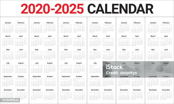 Source : www.shutterstock.comCalendar from 2020 to 2025 years template Vector Image